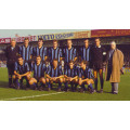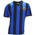 Camiseta retro negra y azul del Club Brujas, equipo que históricamente se reparte con el Anderlecht el liderazgo en Bélgica. Después de haber cosechado buenos resultados en los años 20, el Brujas no vuelve a destacar hasta el año 1968, cuando gana la Copa en la final contra el Beerschot. Conquista este trofeo también en 1970, esta vez contra el Daring. Entre finales de los años 60 y comienzos de los 70 el Brujas quedó cinco veces segundo en la Liga belga: eso significa que había equipo pero faltaba algo para dar el salto definitivo. Los jugadores más importantes de los años 60 fueron Fernand Goyvaerts, Raoul Lambert, Erwin Vandendaele y Fons Bastijns.