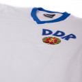 Camiseta de fútbol blanca de la DDR, la Selección de Alemania de Este, utilizada como segunda equipación en su única aparición a un Mundial, él jugado en Alemania en 1974.
