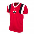 Camiseta retro de Egipto, la selección que ha ganado más veces la Copa de África. En los años 80, Egipto ganó la Copa de África de 1986, en los penaltis en la final contra Camerún. En semifinales, un gol de Aboud Zeid dio la victoria a los egipcios contra Marruecos. En esta década, también destacamos la primera clasificación egipcia a un Mundial, en concreto él de Italia 90. En el torneo, Egipto fue eliminado en la primera ronda, pero cosechó un empate de prestigio contra Holanda (goles de Abdeghani y de Kieft). Los jugadores más importantes de Egipto en los años 80 fueron Hossam Hassan (recordman absoluto de goles, 69), Magdi Abdelghani e Ismail Youssef.