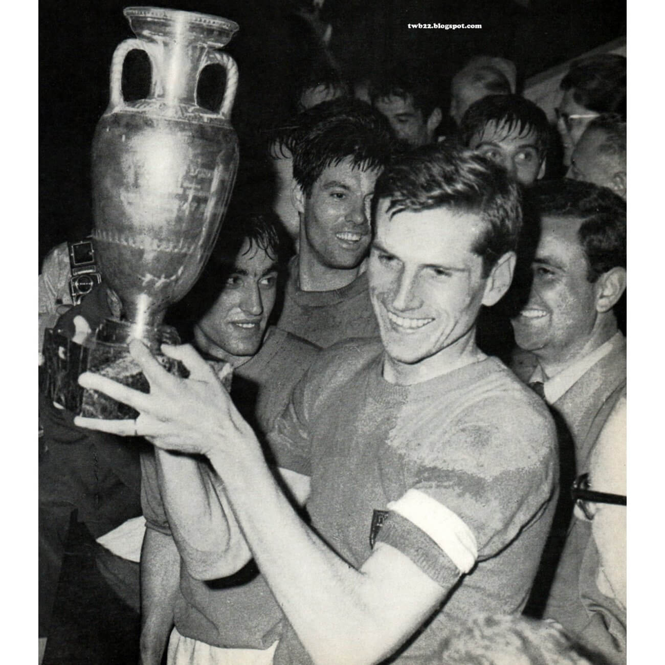 La camiseta de la Italia que ganó la Eurocopa de 1968, en la que fue su primera participación absoluta en el torneo. Entonces el formato de la competición era muy diferente del actual: fase de calificación muy larga, cuartos de final entre las primeras clasificadas de cada grupo. La fase final incluía solo semifinales y final. Italia ganó la semifinal contra URSS gracias al famoso lanzamiento de la moneda; en aquella época no existían los penaltis después de las prórrogas. En la final contra Yugoslavia, el partido terminó 1-1 con goles de Domenghini y Dzajic. Se repitió el partido siempre en Roma después de sólo 48 horas: Italia -Yugoslavia 1968 2-0, con tantos de Riva y Anastasi. Otros jugadores famosos de aquella histórica aventura fueron Albertosi, Bulgarelli, Mazzola, Burgnich e Facchetti.