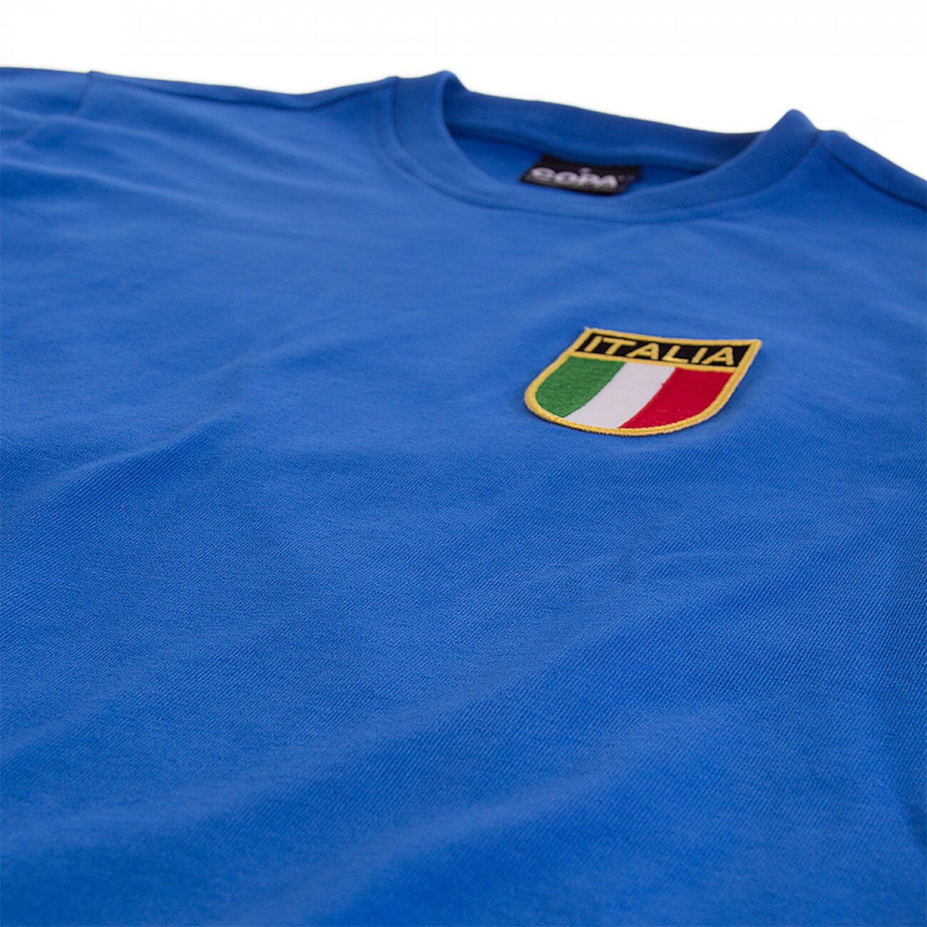 La Selección Italiana de Fútbol utilizó esta misma equipación también en los Mundiales 1970 en los Mundiales 1970, donde se jugó “El partido del Siglo”, Italia-Alemania 4-3, semifinal de México 70. En el minuto 90, el resultado era 1-1 (Boninsegna), la prorroga desató la pasión en el estadio Azteca. Las dos selecciones se intercambiaron golpes con jugadas y goles. La Selección Italiana resistía con orgullo a un Gerd Muller en estado de gracia (goles de Burgnich y Riva), al final Rivera anotó el tanto del histórico 4-3, que hemos visto en la tele durante décadas. Este gran esfuerzo pasó factura a Italia, que en la final fue arrollada por el Brasil de Pelé: aparte O Rey, marcaron en esta final también Boninsegna, Gerson, Jairzinho y Carlos Alberto.