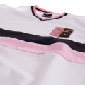 La segunda equipación que el Palermo utilizó en los años 70. Con fondo blanco, presenta una raya horizontal rosa y negra y detalles rosas y negros en las mangas y en el cuello a V.