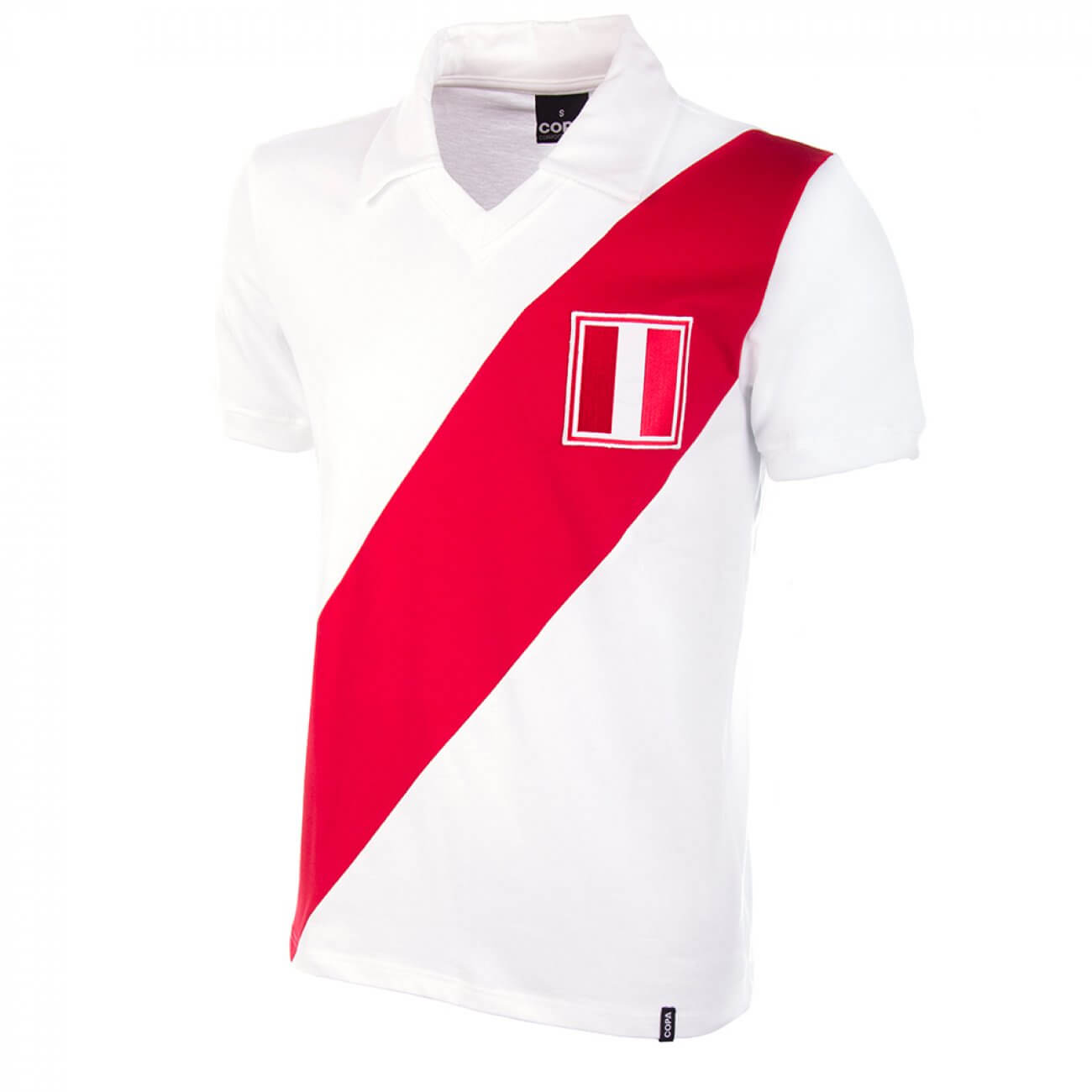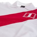 Camiseta retro de la Selección peruana de Fútbol, blanca con rayas diagonales rojas. Los años 70 fueron la mejor época para Perú, de hecho era el tercer mejor equipo de América del Sur, después de Brasil y Argentina. Nos referimos a una generación extraordinaria, de jugadores de clase mundial como Teófilo Cubillas, Héctor Chumpitaz y Hugo Sotil, junto con Cesar Cueto, Roberto Challe, José Velásquez y Juan Carlos Oblitas.