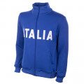 Chaqueta retro que la Selección Italiana de Fútbol utilizó durante los años 70. Chaqueta azul en poliéster, con Italia estampado en grande y en blanco.