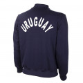 Sudadera azul oscuro, moda años 70, con Uruguay estampado detrás. Chaqueta muy clásica y sobria, con el nombre del país estampado en la espalda. Modelo para hombre, apto para el tiempo libre y para jugar al fútbol. Chaqueta fabricada en Europa, para apasionados del fútbol y del look vintage.