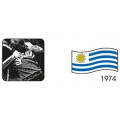 Chaqueta oficial vintage que la Selección Uruguaya llevó durante el Mundial de 1974. La Celeste quedó fuera en la primera ronda, a pesar de contar con el gran Luis Cubilla. Fueron el primer equipo a sufrir el fútbol total (Holanda – Uruguay 2-0). Posteriormente, gol de Pavoni en el 1-1 contra Bulgaria y dura derrota contra Suecia (3-0).