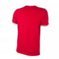 Camiseta roja con detalles verdes y blancos, 100% algodón, reproducción fiel del modelo original de los años 70.