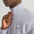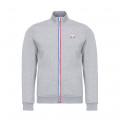 Sudadera Le Coq Sportif gris con creamellera con borde rojo y azul. Fabricada en Maruecco y trabajada en Francia con 300 g Algodón/Poliéster (85%-15%) doble cara de alta calidad. El corte es regular, agradable de llevar. Logotipo "Le Coq" imprimido.